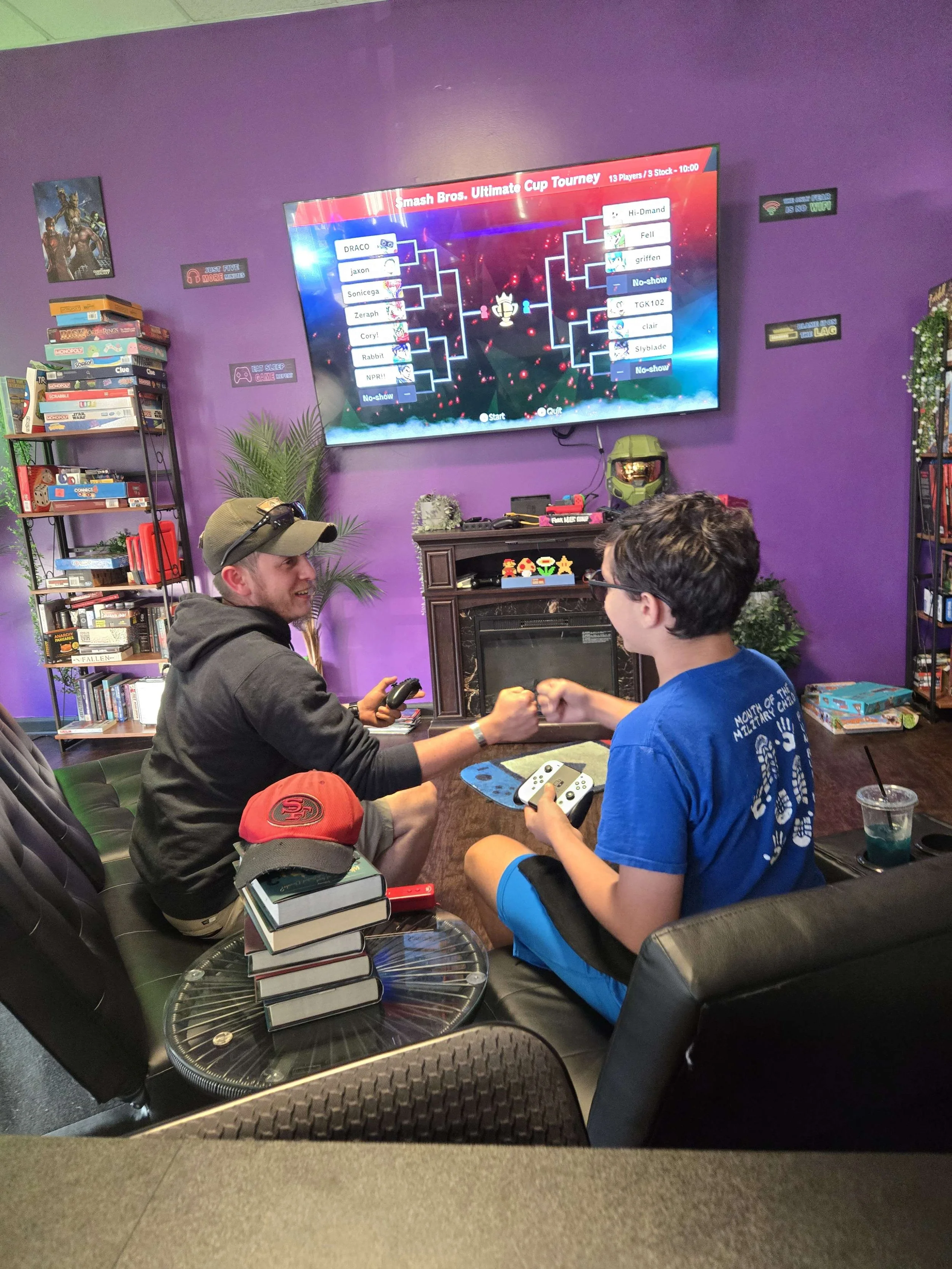 We envision a place where everyone, from casual gamers to hardcore enthusiasts, can find something they love. Whether you're here to challenge friends in the latest video game titles, delve into an epic tabletop adventure, or simply unwind with a good book and a delicious cup of coffee, Out of Mana Cyber Cafe has something for you.