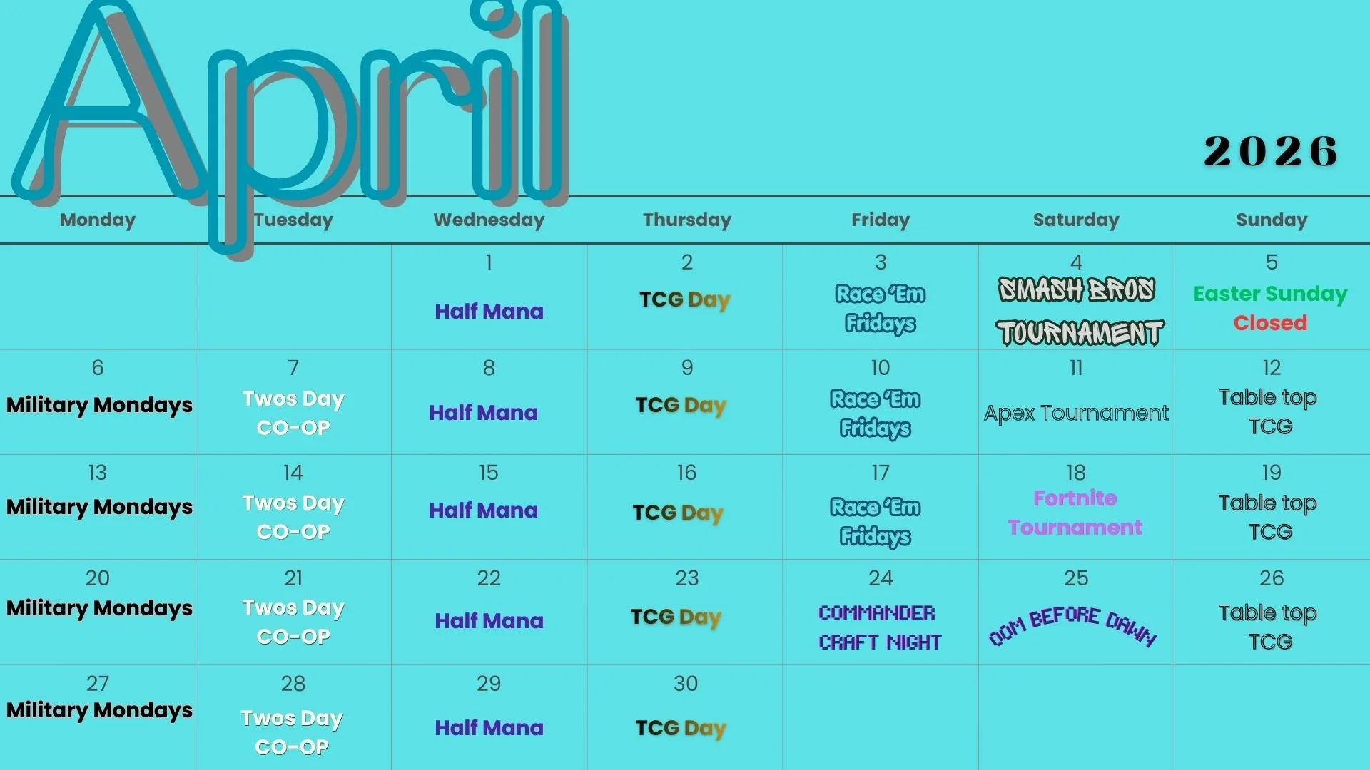 🔹Monday – Wednesday: 12:00 PM – 8:00 PM